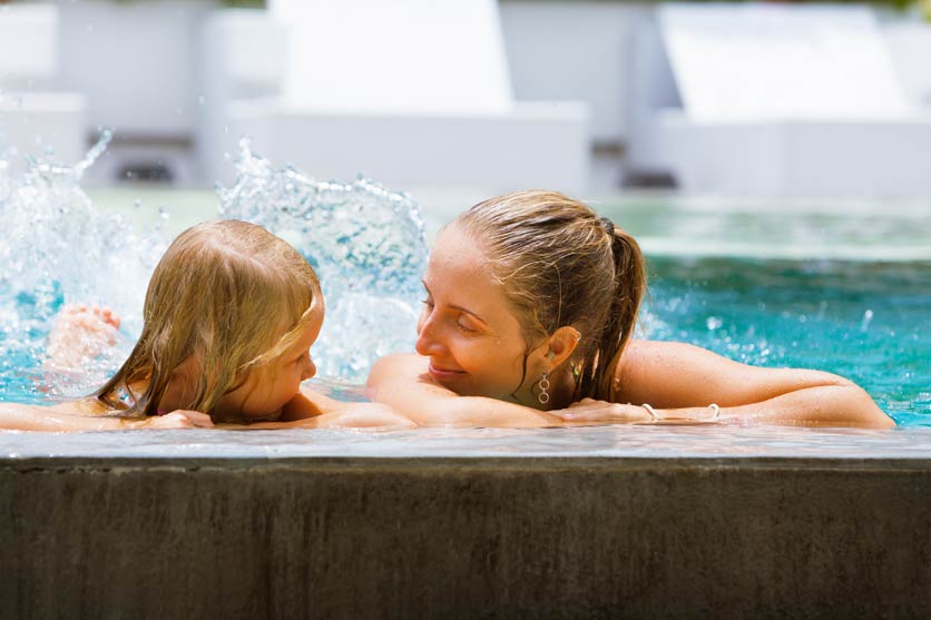 Täglich baden mit oder ohne Textilien. Saunieren immer textilfrei.