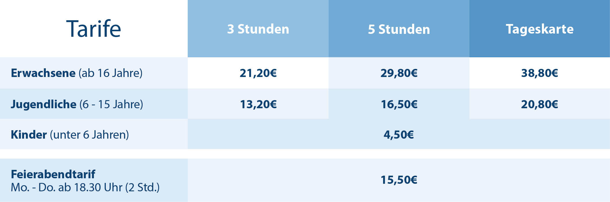 Feierabendtarif Mo – Do ab 18.30 Uhr: 2 Stunden für 15,50 €