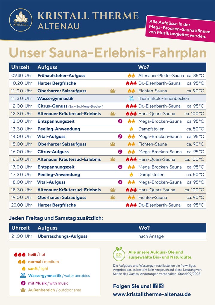 Home Öffnungszeiten Kontakt Download Sauna Erlebnis-Fahrplan Einfach Ihren Wunsch-Aufguss wählen Download Sauna-Erlebnis-Fahrplan