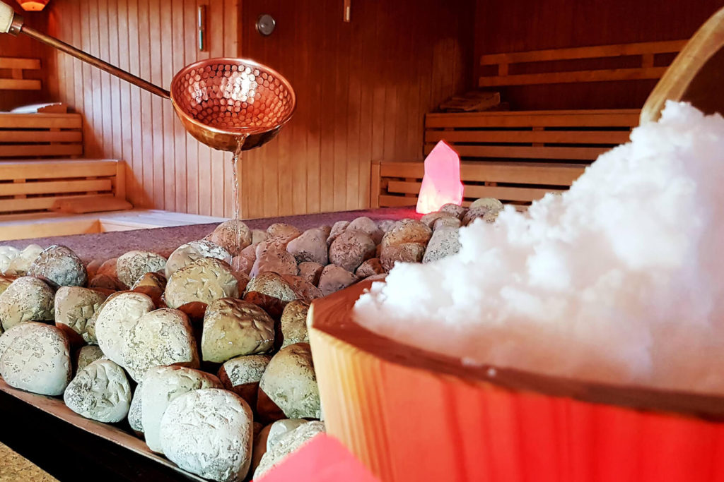 Bei unserem beliebten Salz-Aufguss bieten wir ein Salz-Peeling an. Durch das Einreiben der Haut mit Salz wird die Durchblutung gefördert und die Haut wird rein und weich. Im Vergleich zu anderen Saunagängen verliert man das Zwei- bis Dreifache an Wasser, was die Entschlackung und Entgiftung unterstützt.